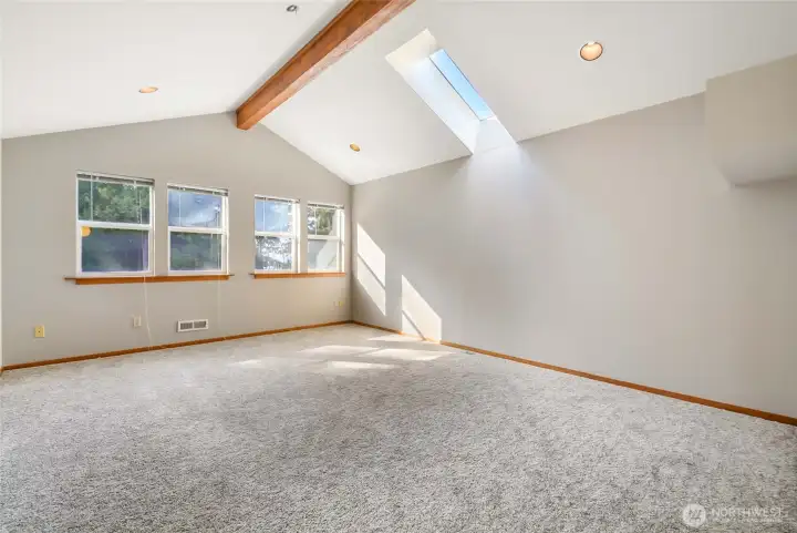 Check out this Beautiful Camano Island piece of Paradise! Follow the tree lined driveway up to the home tucked away above Elger Bay, this property offers Privacy and Serenity on 2.3 Acres. Inside is the Huge Light Filled Great Room with Soaring Beamed Ceilings, Skylights, Laminate Flooring and Wood Stove opens to the Kitchen with Eating Bar, Large Pantry, Gas Range and Utility Room for Extra Storage. Primary Suite is enormous with Open Beamed Ceiling, Walk in Closet, French Doors out to Patio with potential to split for a 3rd Bedroom. Upstairs is the large Loft / Office Space overlooking the Living Area and the second bedroom. Outside there's a Sound View and plenty of space for parking with room for a Shop and RV with Hookups. Newer Roof, Furnace, Hot Water Tank and Exterior Paint! The adjoining 1.8 Acres to the East is also available for sale MLS# 2359760. Potential to subdivide for a total of 3 Lots including adjoining parcel per Island County.