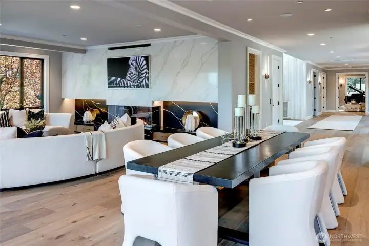 Set in one of Medina’s most established residential pockets, directly across from the storied Overlake Golf & Country Club, 1525 79th Pl is a rare expression of world-class custom living in a setting defined by privacy and proximity. Spanning more than 9,000 SF, this is not luxury built to satisfy a market checklist, but a true statement residence- architecturally ambitious, sophisticatedly refined, and executed with a level of craftsmanship and permanence seldom found in newly built inventory. 10-foot gallery-style hallways, 5 en-suite bedrooms, 8 baths, 2 offices, and expansive walls of triple-pane glass create a powerful sense of scale, light, and precision, while lovely views extend from the lush golf course to the Bellevue skyline. Thoughtfully designed for both daily living and elevated entertaining, the home also features a sky-lounge, outdoor BBQ kitchen, 4 sets of washers-dryers, and a Tesla Powerwall system that further underscores its exceptional level of planning and finish. Every material, finish, and transition feels deeply considered and meticulously curated, elevating the home far beyond the language of ordinary spec construction. Private yet grand, serene yet commanding, this is the kind of estate the market rarely offers: a quietly regarded address, a home of uncompromising custom quality, and a modern residence whose distinction lies not only in its size or setting, but in the unmistakable fact that it could not be casually replicated. (staging removed)