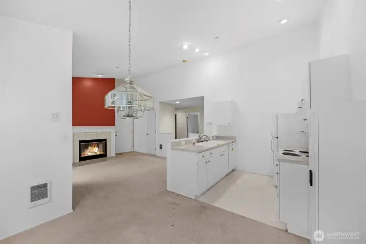 Welcome to this bright & inviting top-floor condo in the desirable Campus Point community! Soaring ceilings & abundant natural light create an open, airy feel throughout the main living space, anchored by a cozy fireplace, perfect for relaxing or entertaining. The kitchen features crisp white cabinetry, ample storage, & a breakfast bar that seamlessly connects to the dining & living areas. The spacious primary suite offers a walk-in closet & private 3/4 bath, while the second bedroom enjoys its own full bath, ideal for guests or shared living. Step outside to your private deck & enjoy peaceful top-floor living. Additional highlights include in-unit laundry, updated lighting, & two assigned parking spaces (1 covered, 1 uncovered). HOA dues include water, sewer & garbage. Located in a prime Lynnwood location just minutes to Edmonds, shopping, dining, transit & Light Rail. No rental cap, perfect for homeowners or investors alike!