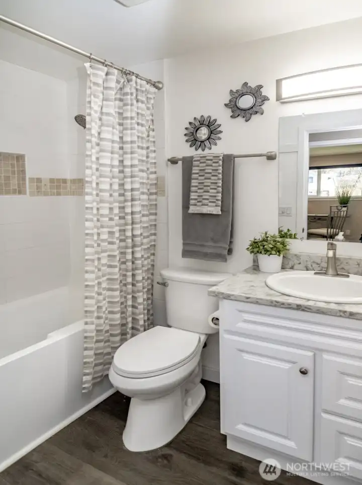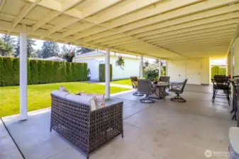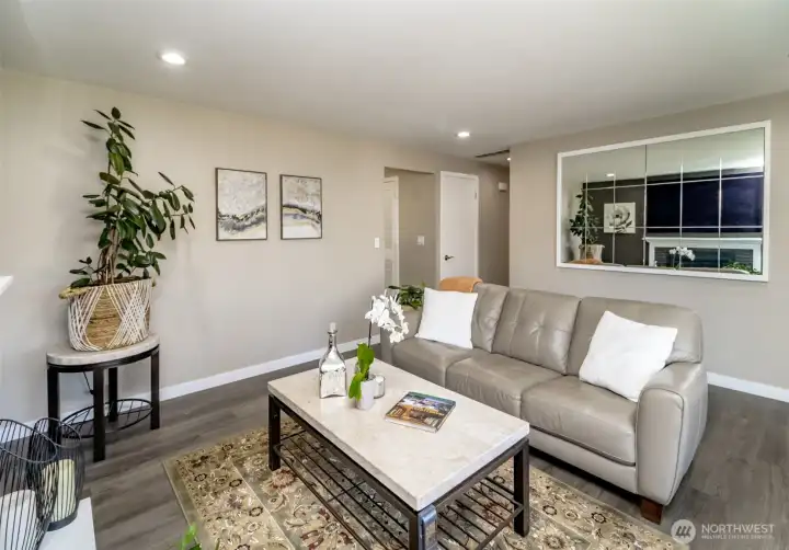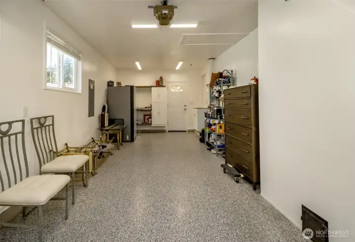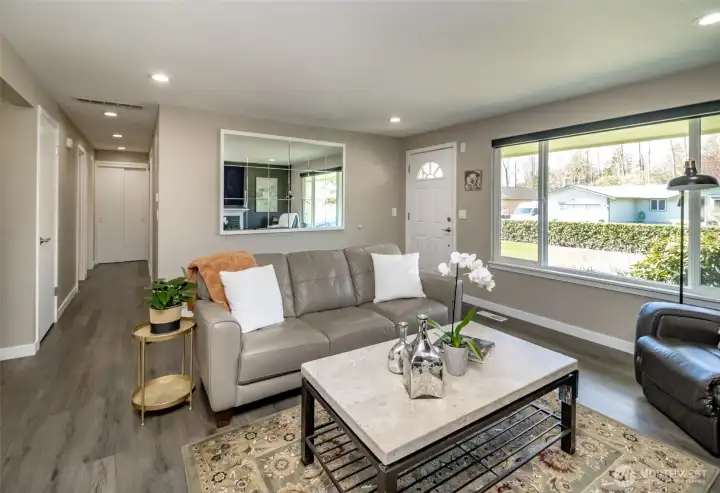 Super clean rambler in ideal Tacoma location! This charming home offers recently redone kitchen, baths, beautiful laminate wood flooring, carpet, vinyl windows and more! Cozy gas fireplace in front room, open kitchen with eating space, inside laundry off of kitchen, 3/4 bath off of primary with electric washlet toilet. Updated main bath. Fully finished attached garage with mud sink, ample storage, EV charger, tank-less water heater and epoxy coated flooring. PLUS XL detached garage in alley built in 2013 with RV parking pad or park up to 3 cars. New sewer line and windows in 2013. New heat pump/furnace in 2015 with A/C. Sprinkler system in front and back. Fully covered patio ideal for outdoor entertaining all year round. Meticulously maintained front and back yard with custom concrete work. Close to many conveniences, hospitals, houses of worship, restaurants and shopping. This gem won't last long!