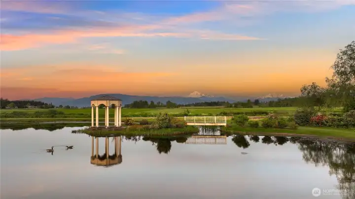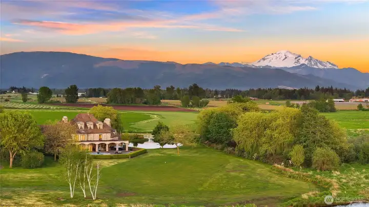 Rarely does the world of opulence so harmoniously blend with comfort of everyday living, offering a space that is both luxuriously appealing yet gives you that true feeling of being home. Superb craftsmanship & incredible spaces for gathering are the hallmarks of this 7,000 square foot French Country estate on over 10 acres at the end of a private lane. Enjoy a spectacular primary bedroom with a fireplace and two walk in closets, all bedrooms with en suite baths, and a one bedroom mother-in-law suite with its own private entrance. Wake up to epic sunrises on Mt.Baker while sipping your coffee and relax in the evening with a glass of wine watching the sun set over picturesque Wiser Lake. A legacy property, truly in a category of its own.