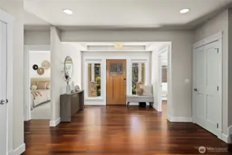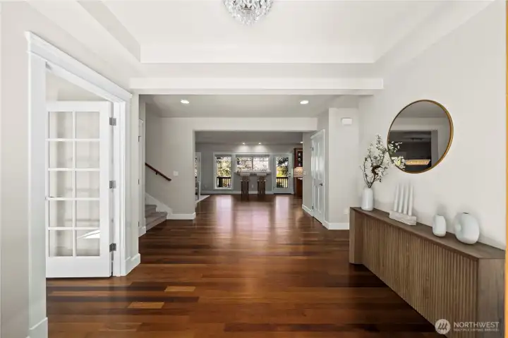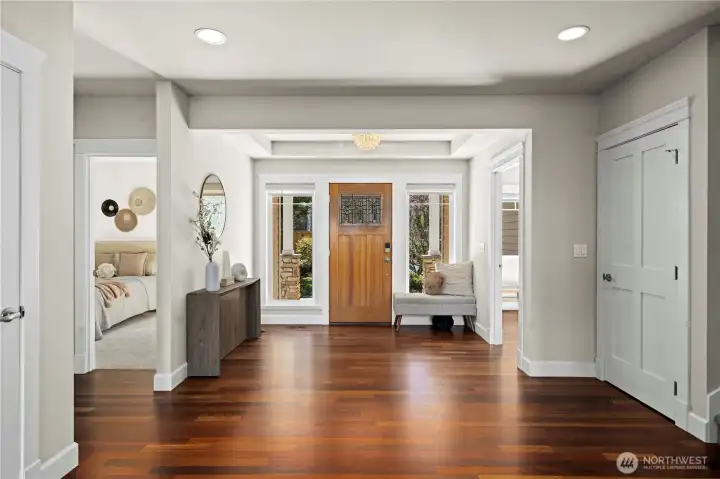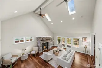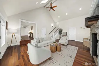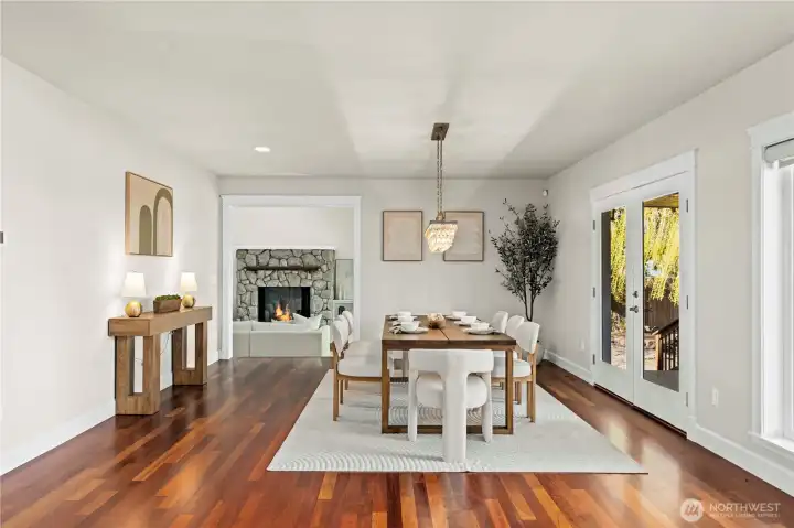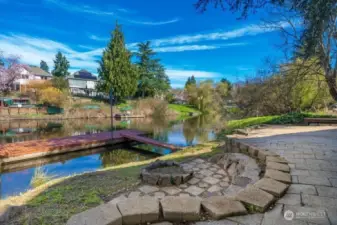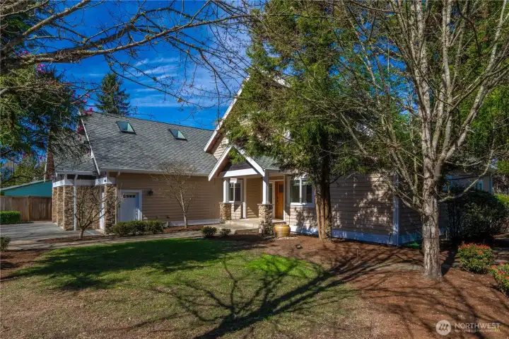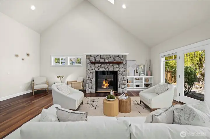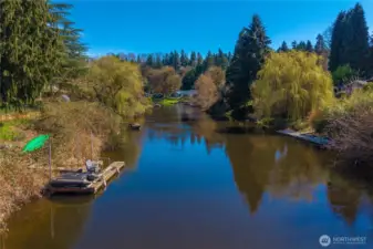 Tucked away on a private 12,782 sq ft lot, this impeccably designed NW Craftsman offers 96 feet of frontage on the Sammamish River. Enjoy tranquil water views and your own private dock—navigable all the way to Lake Washington. Excellent curb appeal sets the tone, while inside you’ll find gorgeous hardwood floors, a gourmet kitchen with commercial-grade appliances, and a striking great room anchored by a stone fireplace with soaring vaulted ceilings and river views. The main level also features a sunny office and a bedroom with a ¾ bath. Custom open layout offers dual 2nd floor spaces. One features the gracious primary suite with vaulted ceilings and a private balcony overlooking the river, and a second bedroom that include it's own on-suite bathroom. Above the main floor great room is an oversized rec room with wet bar, vaulted ceilings, skylights and new carpet. Step outside to an expansive partially covered deck and riverside patio—perfect for relaxing or entertaining year-round. Fresh interior and exterior paint, new carpet, and thoughtful updates throughout complete this move-in ready waterfront retreat. Ideally located just minutes to downtown Bothell’s shops and restaurants, the Burke-Gilman Trail, and the University of Washington Bothell, with easy access to I-405 and HWY 522—offering the perfect balance of peaceful waterfront living and everyday convenience.