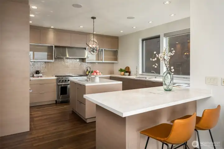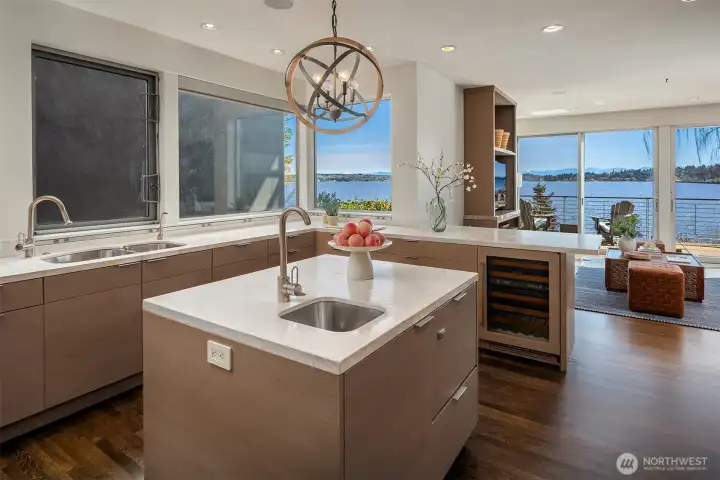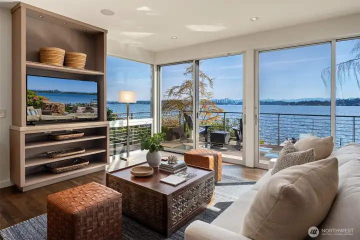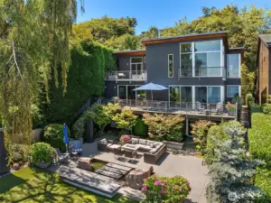 Discover life on the lake at this gated Contemporary masterpiece in the heart of Leschi. With views from nearly every room, floor-to-ceiling windows and sliders connect the interior living spaces to the outdoors and the spectacular views of the lake and Bellevue skyline. The open floor plan allows for effortless entertaining and everyday living. The upper level primary retreat is filled with light and sweeping views; a simply breathtaking refuge with a private view terrace and spa-like bath. The lower level offers two bedroom ensuites, exercise room, wine cellar and media room with wet bar. An incredible lake lifestyle includes a private dock with two lifts + jet ski lifts, expansive patios/decks, outdoor kitchen and hot tub—this is a home for gathering with friends and loved ones. All this in an ideal locale—stroll to Starbucks, Leschi Market, Daniel’s, the marina and sunny parks.