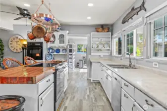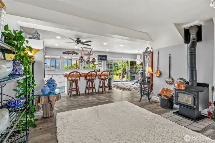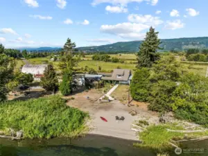 Don't miss your opportunity to own this sprawling 1 acre waterfront retreat with a private beach on the Columbia River! You will enjoy watching the "working river" VIEW from the property featuring local ferry, international ships, fishing, and wildlife views. This is a large 4bd 2ba home that has everything you need on the main floor. Large primary en-suite w/ custom walk-in shower, open concept kitchen/dining with eat in kitchen, butlers pantry with french doors, and elegant living space with wood stove to cozy up to. Also a Ductless heat-pump for added efficiency. Upstairs you will find 3 more bedrooms, and a library/ TV area. This property has expansive grounds w/ a beautiful courtyard, conservatory, gardening shed/area, tool shed, chicken coop, and 5 shop/garage bays! Even a 19x40 Shop for RV/Trailer. Garages offer a possibility for home business. Property has a total of 4 driveway approaches. A paved wrap around driveway for everyday use, and back yard/beach access from either side of the property. The landscaping is impeccable and low maintenance. This Estate has so much to offer and is worth the time to come see it.