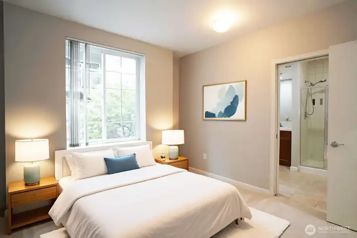 Experience the best of downtown Bellevue at Library Square! This rare corner condo with no shared walls offers unmatched privacy and quiet right in the city’s core. Featuring 990 sq ft, this 2-bedroom, 2-bath layout is bright and open with a modern kitchen, stainless appliances, bar seating, and a private balcony for year-round enjoyment. The spacious primary suite includes a walk-in closet and ensuite bath, complemented by a full second bath. Two deeded parking spaces, a well-managed HOA and no rental cap make this home a fantastic choice for buyers or investors alike. All just steps from Bellevue Library, shopping, dining, and the upcoming light rail!