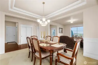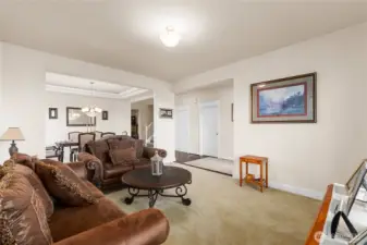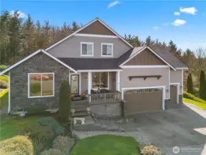 Welcome to the Field of Dreams community. This residence is situated on an expansive, private lot with mature landscaping and exceptional views of the Olympic Mountains from its hilltop location. The meticulously maintained home encompasses 2,750 square feet and includes four bedrooms and two and a half bathrooms. The gourmet kitchen seamlessly connects to the family room, which features a gas fireplace w/access to the large covered patio with cedar T&G ceiling—ideal for gatherings. The main floor primary suite offers a five-piece bath and soaking tub. Additional features include a formal dining room with a coffered ceiling and accent lighting, a comfortable living room, a spacious den, two upstairs bedrooms plus a bonus room/bedroom, and an oversized three-car garage.