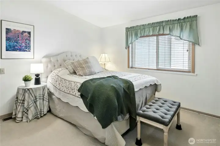 Large ensuite bedroom is at the back of the home, with window overlooking your private garden
