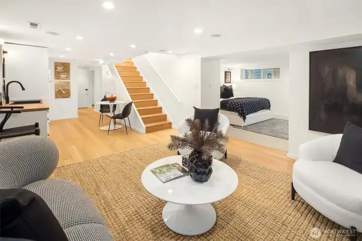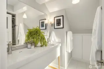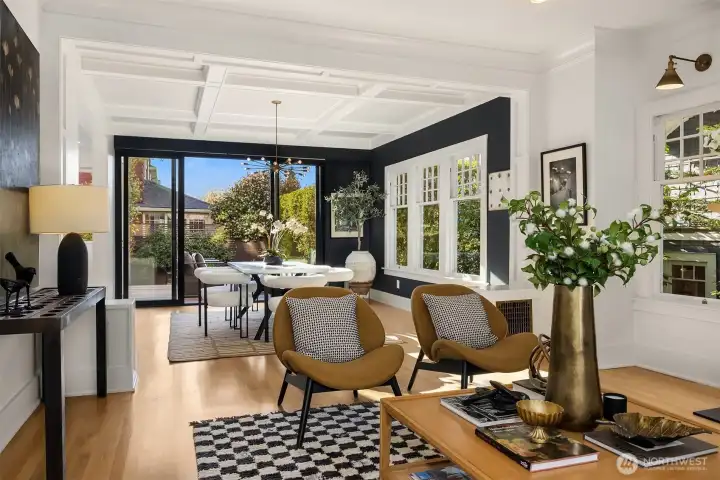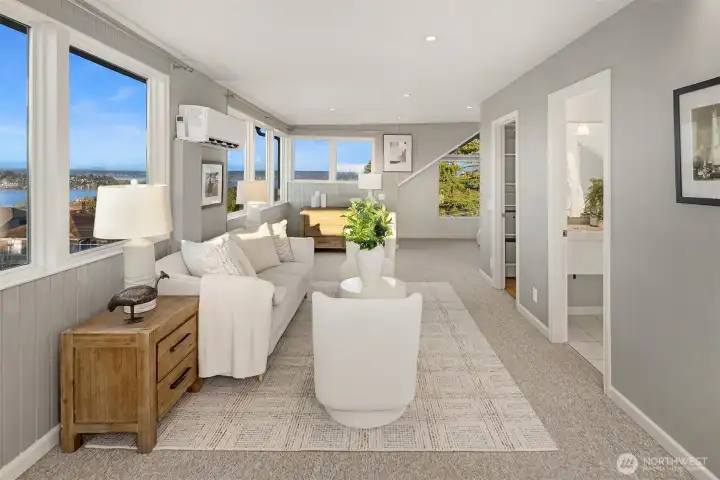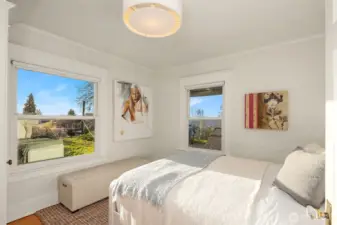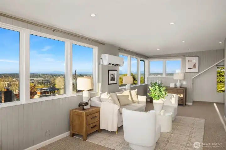 Breathtaking 270-degree views of the Olympics, Cascades, Mt. Baker, and Lake Washington. Modern finishes throughout. This is North Capitol Hill at its finest: a meticulously maintained 1910 Craftsman with all its original charm, thoughtfully renovated by award-winning Board & Vellum in 2018. A wide covered front porch welcomes you into a light-filled interior where timeless architecture meets refined updates. Glass doors open to an ironwood entertaining deck overlooking a secluded backyard for effortless indoor-outdoor living. The kitchen anchors the main floor with a waterfall-edge island, custom cabinetry, quartz counters, Liebherr refrigerator, and Miele dishwasher. A private office and powder room complete the level. Upstairs, newly refinished fir floors lead to three spacious bedrooms and a full bath. The top-floor primary suite offers something few homes can match: sweeping mountain and water views framed by all-new Marvin fiberglass windows, with a walk-in closet and en-suite bath. In the finished basement, an apartment-style suite features a family room with built-in surround sound, a second kitchen, bedroom, bathroom, laundry, spaces for home gym and wine cellar, with a private exterior entrance ideal for guests or multigenerational living. Nest-controlled heating and A/C, spacious carport with storage, and a shared driveway. Steps to several local parks, independent cafés, and excellent private schools, with easy access to both I-90 and SR-520 highways.