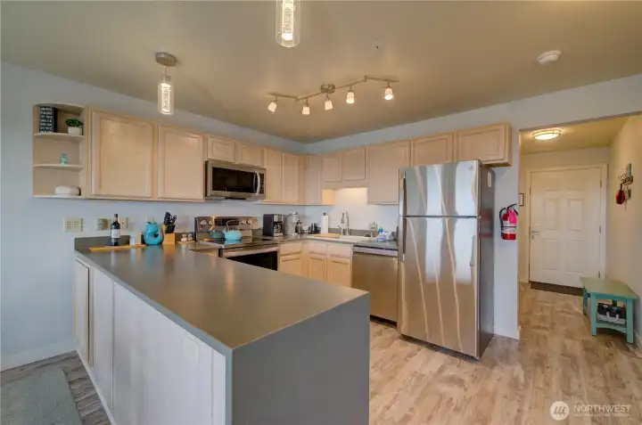 Well-maintained 1 bedroom, 1.5 bath ocean-view condo located near downtown Long Beach. This unit offers convenient access to dining, shopping, the boardwalk, and local entertainment, all within a short walk. The interior features extensive updates, including luxury vinyl plank flooring throughout, quartz countertops in the kitchen, new stainless steel appliances, updated fixtures and lighting, and fresh interior paint. The kitchen provides ample counter and cabinet space, and all appliances are included. The living area includes a gas fireplace and opens to a covered deck with ocean views, providing a comfortable space for year-round enjoyment. The bedroom is well-sized, and the unit includes both a full bath and a half bath for added convenience. Currently used as a furnished income property, offering flexibility for continued rental use or personal occupancy. A clean, move-in-ready condo in a desirable coastal location with easy access to the beach and town amenities.
