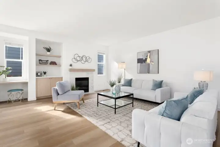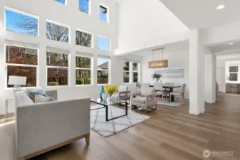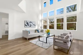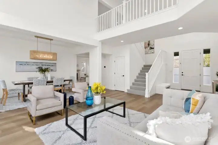 Turnkey home in sought-after Renaissance Ridge! This north-facing 5-bedroom layout includes a main floor bedroom with a full bath, plus an office for flexible living. Soaring ceilings and a dramatic wall of windows create an open, light-filled living and dining experience. The bright kitchen features quartz counters and a center island that flows into the family room, perfect for everyday living and entertaining. Enjoy new laminated hardwood floors on the main level, upgraded bathrooms, and a spacious primary suite with a 5-piece bath. Set on a quiet cul-de-sac with a private yard for outdoor enjoyment, this home also offers a three-car garage and an EV charger installed in 2025. With thoughtful updates and flexible spaces, this home is ready for your next chapter in Renaissance Ridge!