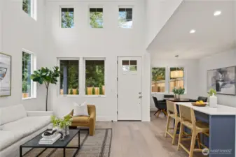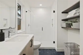 Exceptional new construction cottage by Gerry Homes East of Market, offering refined design & elevated finishes. A charming porch welcomes you to the gracious main level featuring bright & airy two-story living room, with open concept dining and kitchen with gas range. Unique main floor bedroom and ¾ bath offers flexible floor plan. Upstairs showcases two bedrooms, each with en suite baths for ultimate privacy and convenience. Moments to downtown Kirkland, Lake Washington, & extensive dining.