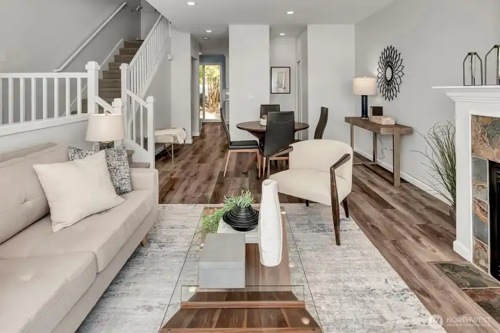 Enjoy the very best in urban living in this beautifully updated townhome in the heart of downtown Redmond, just a short hop to the QFC, top-rated restaurants and all that the vibrant city has to offer. Microsoft, Google, Amazon and Meta are all just minutes away and the Sammamish River Trail beckons, with it's miles of bike path meandering along the pretty waterway. Visit the Redmond Saturday Market for the finest fresh produce, flowers and seafood, open every weekend from May through October. This location is truly special! With over 1400 sf, the spacious townhome has had extensive updates in the past two years including new carpeting, a new garage door opener, new lighting, new windows (front of the house) and fresh interior paint in the past month. The water heater, AC (mini-split), vinyl plank flooring, remodeled kitchen and baths were all done in 2024. The primary bedroom has vaulted ceilings and a large walk-in closet with custom organizers. The spacious great room with cozy gas fireplace overlooks community greenspace. The over-sized garage has tremendous storage for all of your things. This is truly a haven from your busy day with all of the convenience of downtown life. Welcome home!