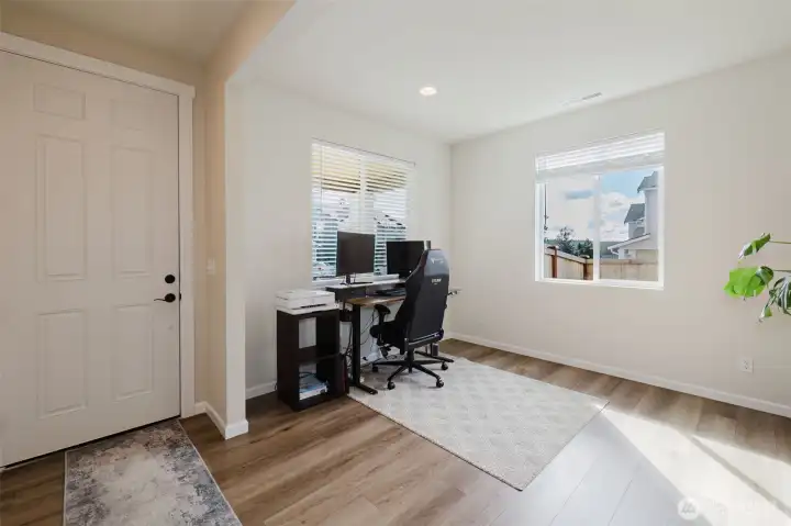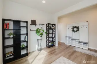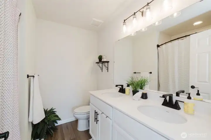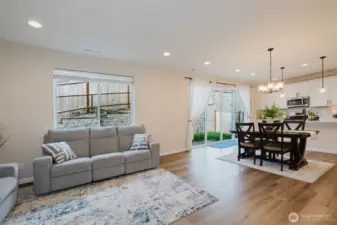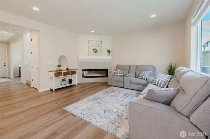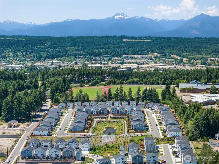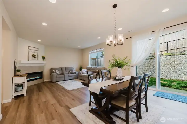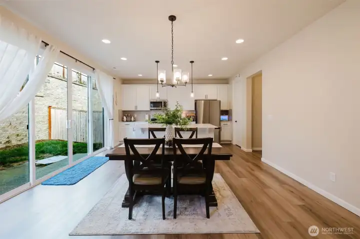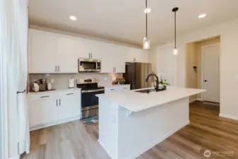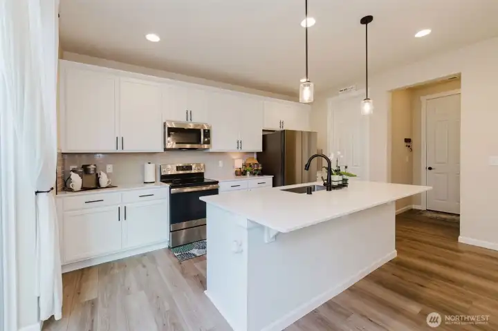 Nearly new and beautifully designed, this 2,263 sq ft home features custom interior finishes and a functional open-concept layout. The main level offers an inviting great room, versatile flex space ideal for an office, gym, or dining area, and a stunning kitchen with a center island and walk-in pantry, perfect for entertaining. Four-panel sliding glass doors open to the patio and fenced backyard for seamless indoor-outdoor living. Upstairs includes a spacious loft, convenient laundry, and a primary suite with walk-in closet and double vanity, along with two additional bedrooms each featuring walk-in closets. Located on a desirable corner lot in a sought-after neighborhood with parks and walking trails, and just minutes to bases, ferries, shopping, and Central Kitsap schools.