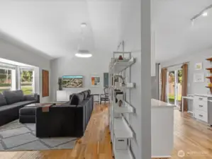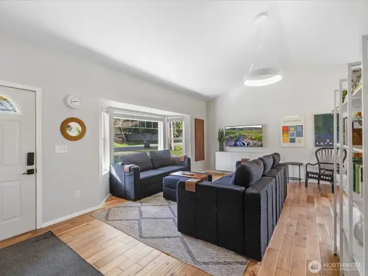 Enjoy your own piece of Whidbey Island in the peaceful Beachwood community! Thoughtfully designed to maximize living space, this home features soaring vaulted ceilings in the great room, creating a light-filled and inviting atmosphere. Stunning acacia hardwood floors add warmth and character throughout.The beautifully appointed kitchen showcases sleek quartz countertops and timeless maple cabinetry, perfectly blending style and functionality. Step outside to a fully fenced yard offering privacy and space to relax, garden, or entertain, along with an additional storage shed for all your needs.Ideally located just minutes from Langley, known as the “Village by the Sea” and a short drive to the Clinton Ferry, this home offers both tranquility and convenience. Wired for a whole-house generator, providing added peace of mind year-round.