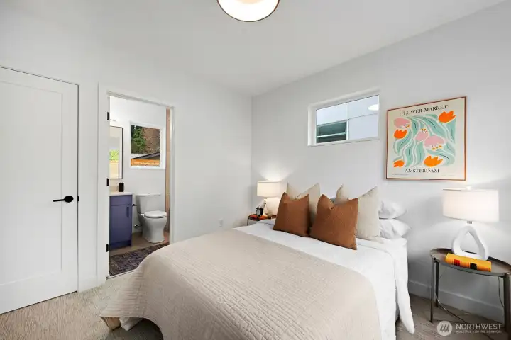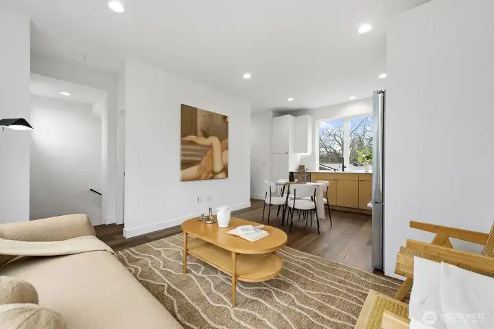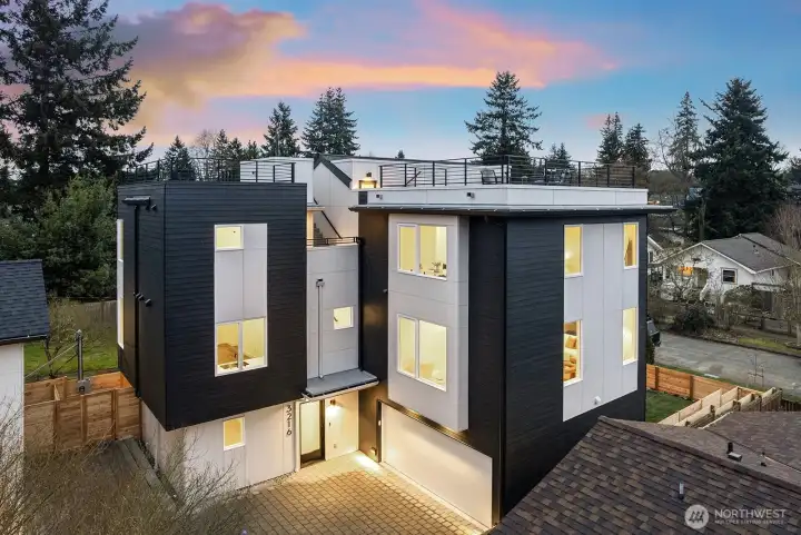 Stunning new construction thoughtfully completed by Coombes Development. This well-designed layout is elevated by quality finishes that perfectly complement practical living spaces. On the lower level, find a spacious bedroom with an en suite full bath. On the second floor, enjoy open-concept living with a chef's kitchen featuring custom cabinetry, quartz counters, stylish backsplash, and SS appliances. The expansive windows provide ample natural light in the living and dining area, and the powder room provides convenience. Up, enjoy the primary suite with a luxurious bath. To top it off, climb to the private rooftop deck with excellent territorial views. Additional amenities include designated parking space, engineered hardwood floors, accent stair lighting, heated bathroom floors, & mini-splits for heating and cooling. Near many neighborhood favorites on California Ave and easy access to the West Seattle bridge.