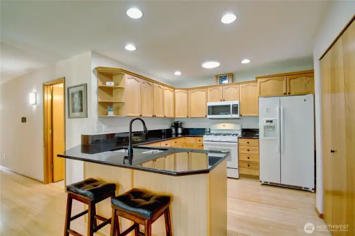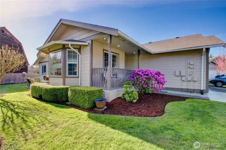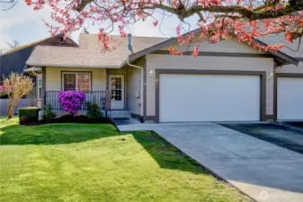 Your next chapter starts here. Only 7 duplex-style units in this intimate association—each lives like your own single-family home. Proud owners have taken wonderful care of this gem. Cozy 3 bedrooms, 2 baths, dedicated dining area, and a comfortable living room with a two-sided gas fireplace. The kitchen offers lots of storage cabinets, bamboo floors, granite countertops. A Murphy bed in the first bedroom stays—perfect for guests or flex space. You manage the easy lawn; the association is responsible for the rest: tree pruning/removal, gutter cleaning and repair, moss prevention, driveway maintenance, roofs, street lights, exterior painting & repairs. True low-maintenance Northwest living!