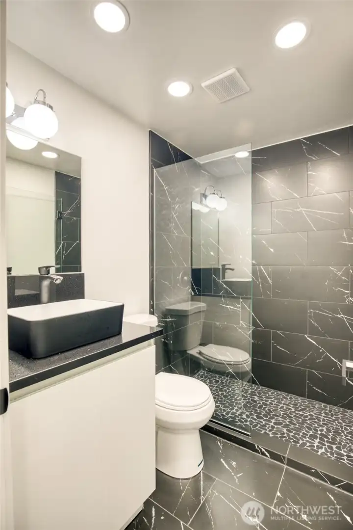 Welcome home! If you’ve been dreaming about a place by the coast — this is it. This fully renovated 4-bedroom, 3-bath home blends elevated design with everyday livability, just minutes from the beach. Inside, you’ll find a bright, open layout with clean lines, modern Euro-style cabinetry, custom tile work, and durable waterproof flooring designed to handle coastal living. The kitchen is both functional and beautiful, featuring quartz countertops, thoughtful storage, and finishes that feel current without being trendy. Throughout the home, updated doors, designer railings, and refined details create a cohesive, polished feel. Major systems have already been taken care of — including a new roof, HVAC, water heater, windows, siding, and gutters — giving you confidence from day one. Enjoy peek-a-boo ocean views, fresh coastal air, and a location that makes getting to the beach effortless. Whether you're looking for a full-time home, weekend escape, or investment — this one delivers. You really need to see this one in person to fully appreciate it. Are you ready for your next adventure?