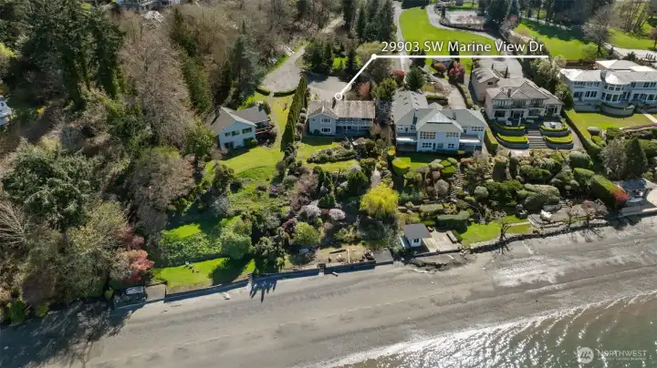 Welcome to a truly rare waterfront offering an extraordinary legacy property featuring 88 feet of private sandy beach with title rights and breathtaking 180-degree views of the Puget Sound, stretching from Point Ruston all the way to Redondo, with sweeping sightlines of Seattle and Maury Island. Enjoy unforgettable sunsets over the Olympic Mountains and a constantly changing panorama of boats and natural beauty. This special stretch of shoreline offers front row access to nature at its finest watch seals, otters, and even whales glide through the Sound from your own beach. The setting is peaceful, scenic, and undeniably magical. Tucked away at the end of a private driveway, this secluded retreat offers a sense of peace, privacy, and exclusivity that is increasingly hard to find. Outside, you’ll discover an abundance of lush greenery and beautifully landscaped grounds, complete with a terraced lawn perfect for entertaining, relaxing, or simply soaking in the view. This is a once-in-a-lifetime opportunity. This property has been in one family since the 1930's making it a rare legacy property with incredible potential. With creative vision, this residence could be transformed into a truly one-of-a-kind waterfront masterpiece, blending timeless Pacific Northwest charm with modern luxury. Whether you’re envisioning a serene private retreat or an inspired redesign, this property offers the location, views, beach rights, and lifestyle that seldom come to market.