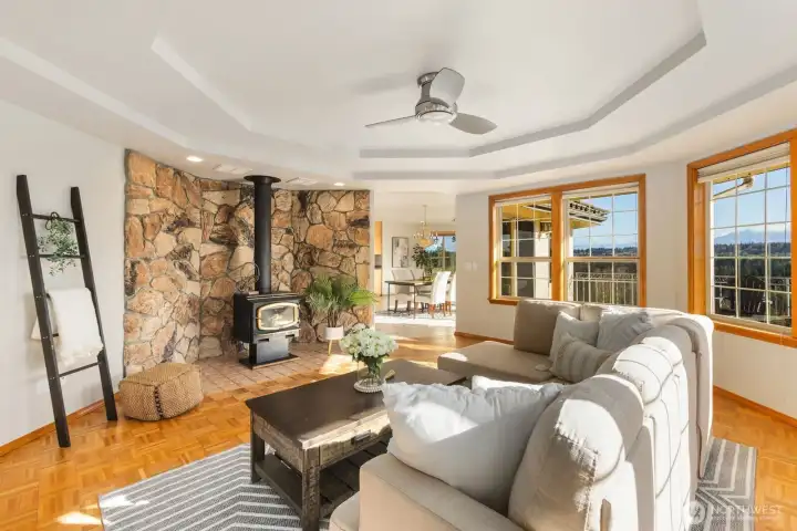 TIMELESS DESIGN & UNFORGETTABLE VIEWS | VISTA LA GRANDE - This custom-built rambler with a daylight basement has been thoughtfully designed and beautifully maintained, offering timeless appeal and everyday comfort. Ideally situated in the highly sought-after Dutch Hill community, known for its peaceful setting and scenic surroundings.From the moment you step inside, expansive windows frame the ever-changing Cascade backdrop, filling the open-concept living spaces with natural light and creating a seamless connection to the beauty outside. Brand new LVT flooring and plush carpet add a fresh, modern touch throughout. Whether hosting gatherings or enjoying a quiet morning, the spacious deck becomes an extension of the home—perfect for taking in sweeping mountain vistas and peaceful farmland below. The main-level primary suite is a private retreat, complete with ensuite bath, generous walk-in closet, and direct access to an additional deck for those serene start or end-of-day moments. Downstairs, the finished daylight basement expands the home’s livability with three additional bedrooms—one with an attached bath-and a versatile bonus space ideal for movie nights, working from home, or hosting guests with private entry. An additional washer/dryer hookup and roughed in plumbing enhance the space’s flexibility. Thoughtful features include a heat pump, central vacuum & generator-ready setup. A rare blend of comfort, functionality, and natural beauty—an exceptional place to call home.