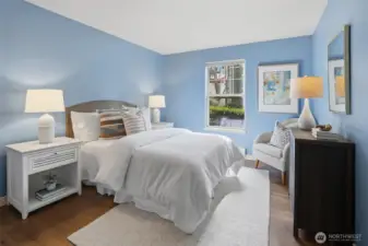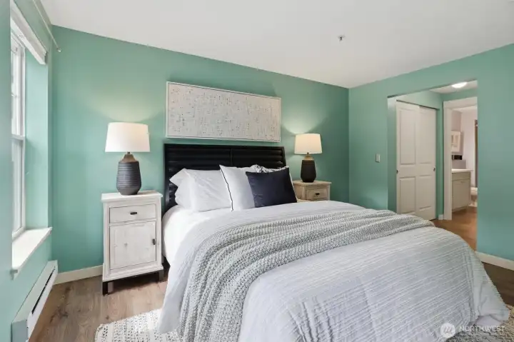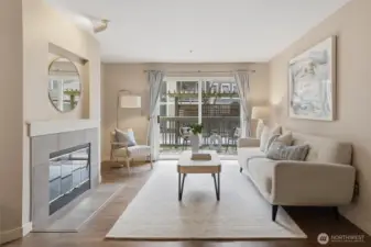 Your gateway to an active lifestyle starts with this comfortable 2 bedroom, 2 bathroom home. Rare and desirable no-step entry and interior. Open floor plan with kitchen, dining and living room at the heart. Primary bedroom suite includes generous ensuite with walk-in shower, two closets and patio access. Secondary bedroom with walk-in closet and adjacent full bath. The home has been updated with newer shaker cabinets, quartz countertops, and newer white appliances. Luxury vinyl floors throughout make cleaning a breeze. Full size laundry machines conveniently located inside the condo. Wood-burning fireplace and ceiling fan keeps it cozy or cool. Large storage closet off of patio. Rock solid HOA with impressive reserves and onsite maintenance. Private, secured, covered parking spot in garage. Community features pool, spa, fitness, garden space and clubhouse. Two pets per unit. Rental cap not met. Enjoy the nearby Kenmore paddle park on Lake WA and tons of trails. Quick to Burke-Gilman, breweries, cafes and shops. Easy commute to UW Bothel and beyond with nearby park n' ride.