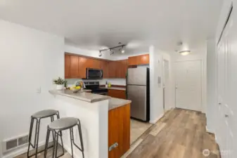 Experience refined urban living at Cooper Square, ideally situated in the vibrant heart of Greenwood. This beautifully refreshed residence welcomes you with a freshly painted interior and newer flooring, creating a crisp, modern ambiance that feels instantly inviting. The thoughtfully designed open layout offers a seamless balance of comfort and functionality, while the sleek kitchen—appointed with stainless steel appliances—provides the perfect setting for everyday living or effortless entertaining. Expansive windows invite natural light to fill the space, enhancing the airy feel and making the home live larger than its footprint.Step outside and enjoy one of Seattle’s most sought-after neighborhoods. Just moments from local cafés, restaurants, boutiques, and markets, this location offers a truly walkable lifestyle. With convenient access to Green Lake, Ballard, downtown Seattle, and major commuter routes, everything you need is within easy reach—whether it’s a morning coffee, an evening stroll, or a quick commute.Ideal for both homeowners and investors, this move-in ready opportunity combines style, convenience, and strong rental appeal. A perfect blend of comfort and location—this is urban living at its best.