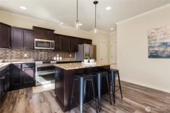 Welcome to this move-in ready home in the desirable Vintage Development of Alderwood Manor, with easy access to shopping, dining, entertainment and parks. Well-maintained and thoughtfully updated, this home has easy-care LVP floors, newer kitchen appliances, updated baths, stylish light fixtures and tile backsplash. The open-concept floor plan is perfect for everyday living and entertaining, offering a welcoming living room, a cozy gas fireplace in the family room that flows seamlessly into a generous dining area, and a well-appointed kitchen with granite-topped island. Upstairs are 3 spacious bedrooms, 2 baths, and a large bonus area, ideal for a home office, den or media room. The oversized primary suite is a true retreat with walk-in closet and 5-piece bathroom. Add/l highlights include a convenient upstairs laundry room w/newer washer and dryer; forced air heat and central A/C for year-round comfort. The attached 2 car garage provides ample storage. Enjoy the fully fenced pet-friendly back yard, perfect for entertaining and relaxing evenings at home. Low HOD dues of $300 per year complete this exceptional offering.