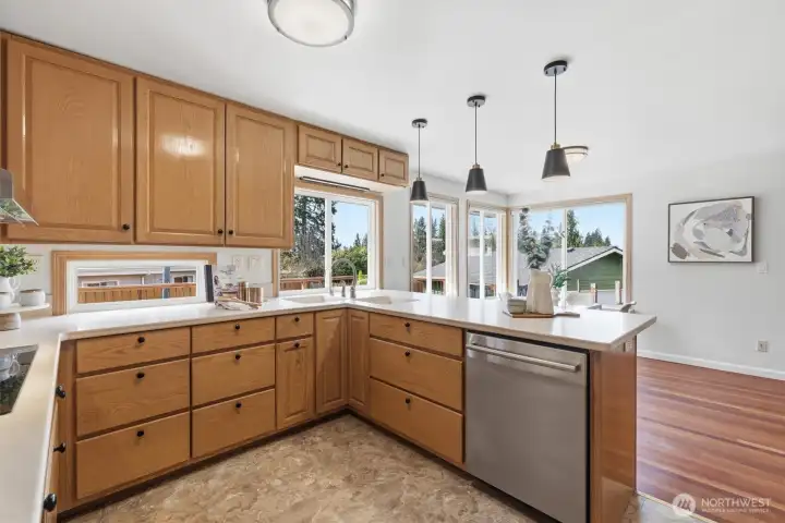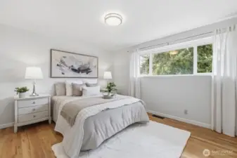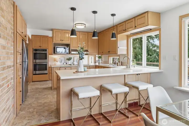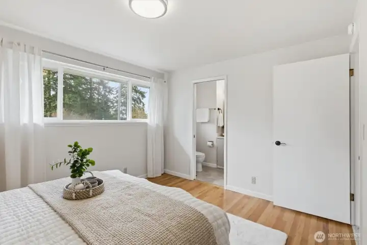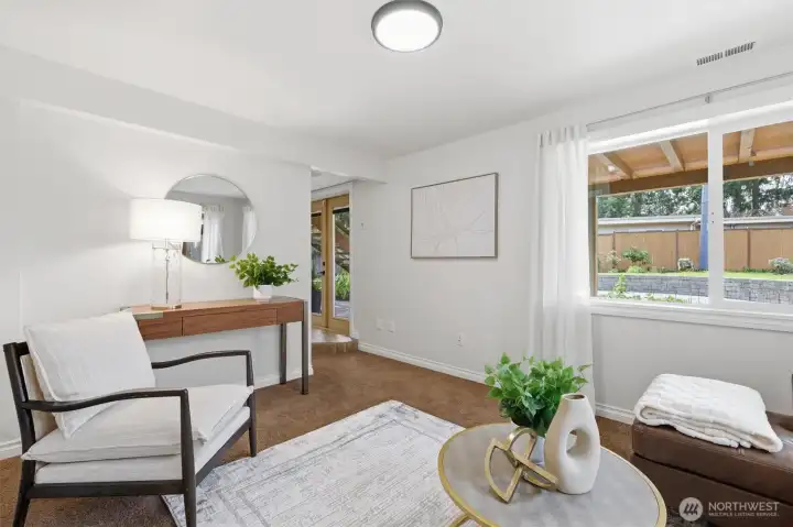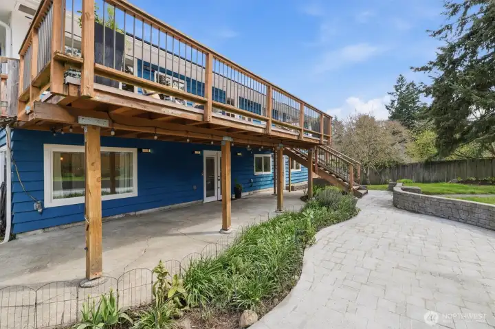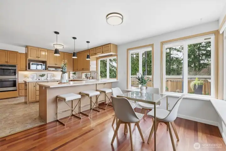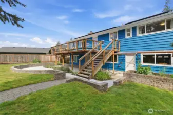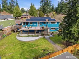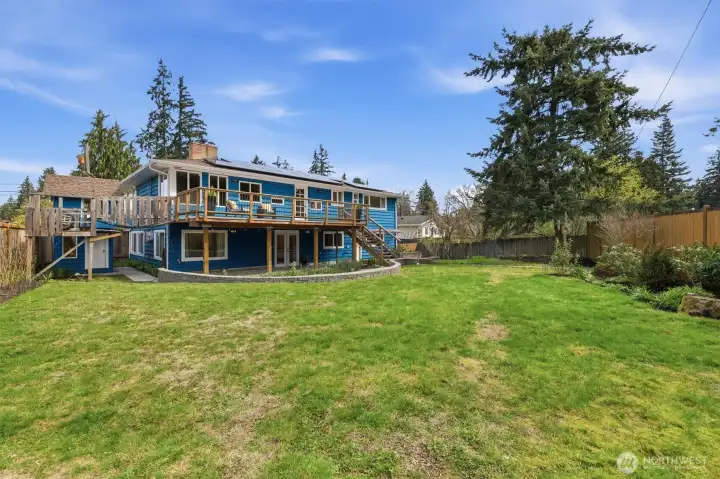 Welcome to Richmond Highlands—an impeccably refreshed, light-filled home where thoughtful updates shine throughout. Gather and unwind in the open living and dining spaces, featuring rich Jatoba wood floors and a gas fireplace that creates a warm and inviting space. Upstairs, all three bedrooms showcase oak hardwood floors. The kitchen blends seamlessly with tasteful design while offering timeless finishes. A well thought out plan with table space and a charming window ledge perfect for morning coffee or greenery. Step onto the sun-drenched south-facing deck overlooking the fully fenced grassy yard, paved patio, and garden beds filled with prolific fruit and berries. The lower-level offers a versatile fourth bedroom with a Murphy bed and stunning wood-burning fireplace with a labradorite granite surround. A spacious family room and generously sized laundry room complete the lower level, while exceptional storage and abundant outlets support today’s work-from-home lifestyle. Solar panels enhance efficiency while ample parking - including RV space and an EV charger - adds to everyday convenience. Exterior access from both levels creates seamless indoor-outdoor living and added versatility. All appliances included. A seamless blend of comfort, function, and elevated living. Don't miss the charming playhouse suited for imaginative play, hobbies and outdoor fun. Pre-inspected and sewer scoped.