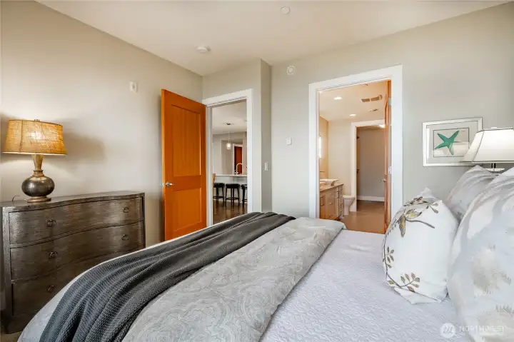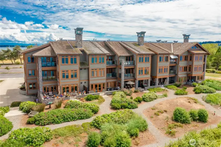 Wake up to sweeping water views from this beautiful 2 bedroom, 1 den, 3 bath home at The Marin. Built of solid concrete & designed to last, this residence combines strength with elegance. Inside, a chef’s kitchen with luxury appliances opens to a spacious great room with gas fireplace and windows framing the bay. Two private suites, a versatile den, and radiant-heated floors create comfort at every turn. Step onto your private deck for morning coffee or evening sunsets. Secure underground parking, private storage, and elevator access make life simple. Just outside your door—Semiahmoo’s marina, resort, golf, pickleball, pool, spa, dining, and miles of trails. A rare chance to own not just a home, but a lifestyle on the Semiahmoo waterfront.