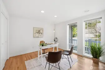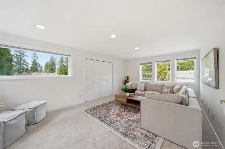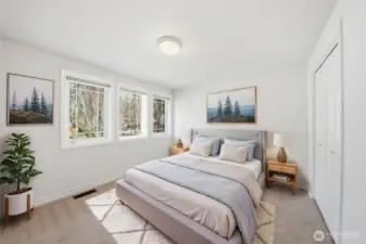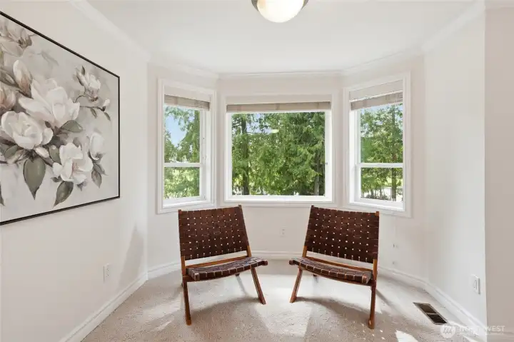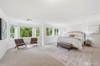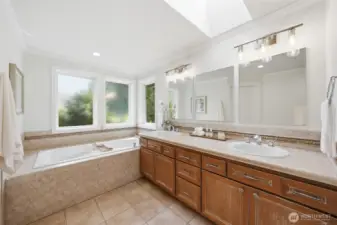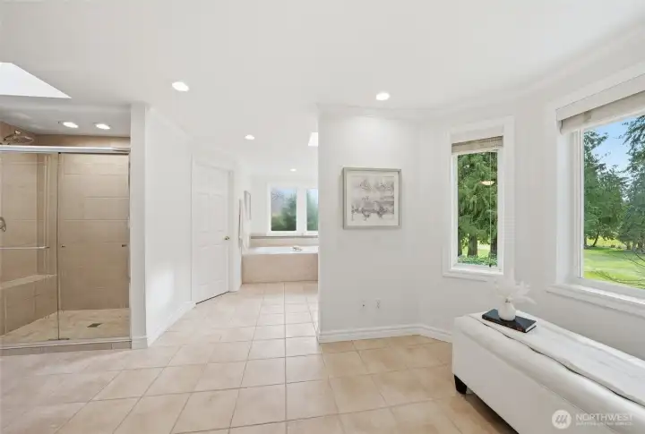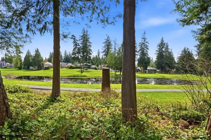 Welcome to one of the best golf course lots in all of Mill Creek! This beautifully refreshed two-story home sits on a super private .33-acre oasis boasting 100 ft of golf course frontage in the rarely offered Laurel neighborhood - offering serene, sweeping views of the pond, lush greenery, and abundant wildlife. With incredible privacy and peaceful surroundings, this is truly resort-style living right at home. This home features the perfect floor plan including 4 bedrooms plus a bonus room with one bedroom and 3/4 bath on the main level; perfect for guests. Completely refreshed and move-in ready, the home features brand-new carpeting throughout, fresh interior and exterior paint, beautifully refinished hardwood floors, updated fixtures, central A/C, and a 50-year roof, making this one of the most turnkey golf course homes available. Step inside to an inviting open layout with vaulted ceilings, skylights, and abundant natural light. The huge gourmet kitchen is a chef’s dream; loaded with rich cherry-wood cabinetry, gleaming hardwood floors, granite slab countertops, stainless steel appliances, a built-in wine captain, and a dedicated wine closet. Perfect for entertaining! The expanded primary suite is a true retreat, complete with a luxurious five-piece bath and private sitting area. Outside, the oversized deck overlooks the private yard and golf course with hot tub, gas fire pit, and room to play or garden. Schedule your showing today before this opportunity is gone!