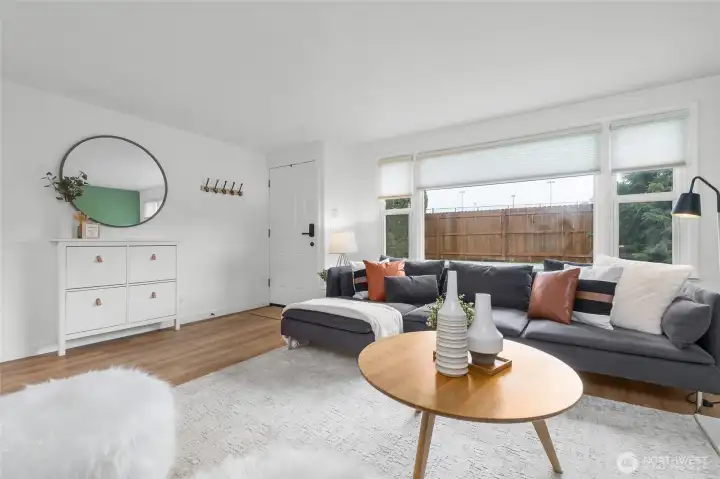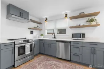 Beautifully updated turnkey 2-bedroom, 1-bath rambler on a spacious flat lot—Great home combining comfort, convenience, and future upside. The bright, inviting interior features a remodeled kitchen with quartz countertops and new appliances, a stylish updated bathroom, cozy breakfast nook, dedicated pantry, and a separate laundry room with washer and dryer. Attached 1-car garage adds everyday ease and storage. Extensive upgrades include a brand-new roof, durable LVP flooring, modern lighting, new heaters, refreshed landscaping, and a newer water heater—offering peace of mind and move-in-ready living. The expansive yard is ideal for entertaining, gardening, or creating your dream outdoor space. Rare opportunity with development potential for a new single-family home or additional units (buyer to verify with city), supported by nearby properties with similar possibilities. Prime location just about 1 mile to Shoreline South/148th Light Rail with direct access to Sea-Tac Airport, University of Washington, and downtown Seattle. Close to parks, shopping, dining, and quick access to Aurora Ave N and I-5. No HOA dues. Shoreline School District. Book your showing today!