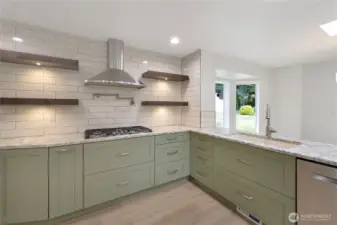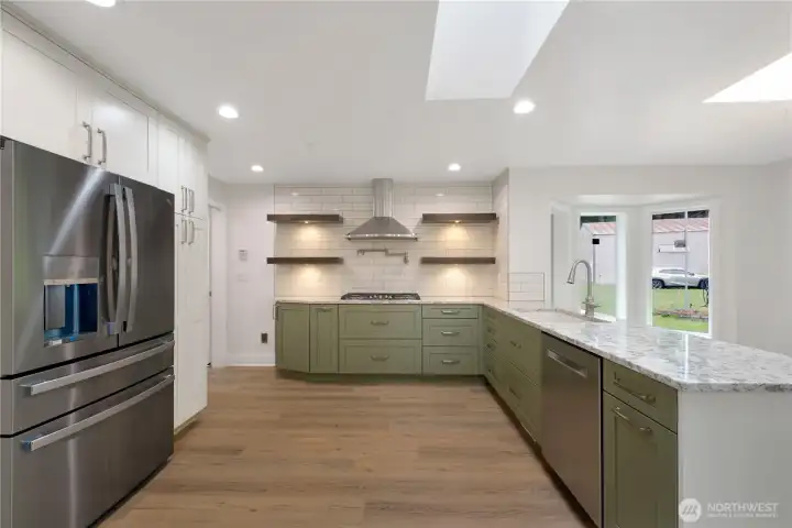 Enjoy a peaceful country setting while staying just minutes from everyday conveniences. This exceptional property sits on over an acre and includes a spacious 1,080 sq ft shop—fully equipped with a 50-gallon air compressor and 100+ feet of hose, perfect for projects or hobbyists. The true highlight is the beautifully remodeled home, thoughtfully updated throughout. The stunning kitchen is a dream for any gourmet chef, featuring quartz countertops, floor-to-ceiling custom cabinetry, a built-in gas cooktop with griddle, convenient pot filler, and a double electric oven with convection/microwave. Vaulted ceilings and skylights fill the home with natural light, creating a bright and open living space. A generator is also included, adding extra value and peace of mind.