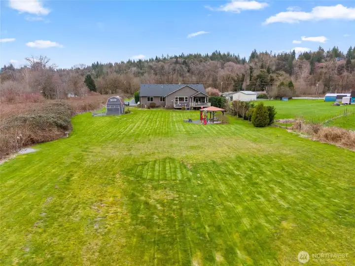 Set on a full acre across the street from the Pilchuck River, this stunning, like-new construction offers the perfect balance of modern living and natural beauty. A home designed for both everyday comfort and effortless entertaining, where open-concept living meets thoughtfully curated upgrades throughout. The spacious layout features 5 bedrooms, 2 baths, and a 3-car garage, with a light-filled great room that flows seamlessly into a well-appointed kitchen. Quality and attention to detail are evident throughout, including under-cabinet lighting, a heat pump, tankless water heater, and a full security system. Step outside and experience the true lifestyle this property offers—beautifully landscaped grounds, a large deck, gazebo with patio, greenhouse with power (hot tub ready), RV parking with hookup, and a Tuff Shed with steel base. With space, privacy, and flexibility, the property lives as well outdoors as it does inside. Located just minutes to Historic Downtown Snohomish, Lake Stevens, the Centennial Trail, and Hwy 9, offering both convenience and access to some of the area’s best recreation, shops, and dining. Turnkey, beautifully maintained, and one of the most desirable listings to hit the Snohomish market this year.