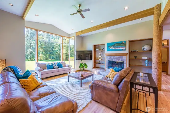 With vaulted ceilings and expansive windows overlooking your own private meadow along the Solduc River, this custom North West contemporary home on 10 acres, offers the utmost in craftsmanship & quality! Beautiful living room offers vaulted ceilings and a wall of floor to ceiling windows to enjoy the nature all around. Open concept layout to the dining area and eat in kitchen with . The primary bedroom is a dream with tons of natural light, built in woodwork, a walk in closet and full bathroom. Detached 3 car garage gives plenty of space for cars or toys and the surrounding timber gives privacy to enjoy and easy landscaping options. Nature lovers, fly-fishing enthusiasts and those seeking a serene retreat will marvel at soaring bald eagles, Roosevelt Elk grazing in the meadow below, and world-class fly fishing from the banks of the river flowing by the property. This home offers a short drive to local beaches, Lake Crescent, Solduc Hot Springs and the Olympic National Park!