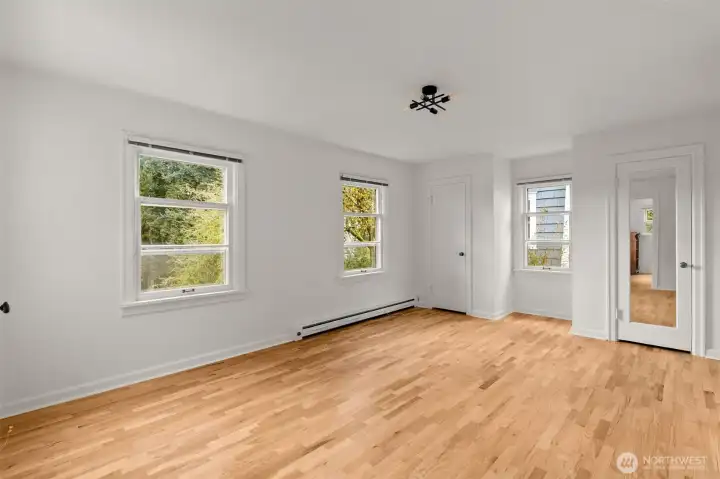 Rare opportunity in the prestigious South Capitol neighborhood! This renovated duplex is located on a quiet street just 5 blocks from the State Capitol campus and minutes from the markets and restaurants of downtown Olympia. Situated next to a serene pocket park, the property offers a peaceful setting with a strong cap rate and ATTRACTIVE OWNER FINANCING. Large picture windows provide fantastic natural light and beautiful territorial views with pleasant spots to gaze at Capitol Lake through the surrounding tall trees. The upper unit features gorgeous refinished red oak floors and a working wood stove for cozy evenings. The lower unit includes a private deck perfect for relaxing. Both units are small and highly practical, offering 1 bedroom and 1 bathroom each. The kitchens are bright with new countertops, plenty of storage, and dedicated eating spaces. Modern upgrades include new water heaters and stacked washer and dryer systems in both units. With rents increased in the last year, this is a turnkey investment or an ideal primary residence with rental income to offset the mortgage. Enjoy being close to everything the city has to offer while living in one of Olympia's most sought-after areas. This property combines charm, modern amenities, and a prime location for any savvy buyer. Don't miss out on this versatile duplex in the heart of South Capitol. Access to upper unit only, lower unit will be accessible upon signed purchase and sale agreement.