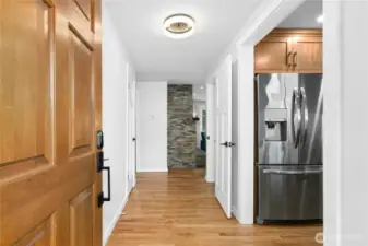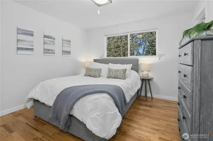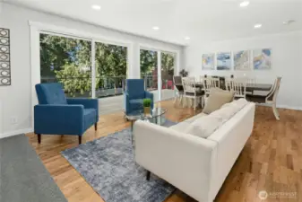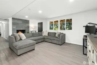 Beautifully updated daylight rambler with high-end finishes throughout! Enjoy over 2,400 sq ft on two levels, featuring a newer kitchen and baths with custom rustic cherry cabinets by Chesky Woodworks. The living room is filled with natural light thanks to two 8’ sliders that open to a spacious Trex deck and a lovely paver patio with privacy fencing—perfect for entertaining. The main floor offers three bedrooms, including a primary suite with a large tile shower. Lower level includes a generous rec room with fireplace, additional bedroom, office, storage/hobby room, and utility room. The two-car garage features a rear glass door that opens to the patio for seamless indoor/outdoor living. Private, level backyard with established landscaping. New roof, new furnace with UV filter, new lower-level flooring, EV wired, and new driveway. Close to shopping, restaurants, parks, trails, schools, and offers easy access to highways and freeways. Septic has been inspected and updated recently.