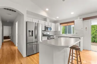 Effortless single-story living awaits on a quiet cul-de-sac. Offering a perfect blend of peaceful retreat and unbeatable convenience in this amazing 3-bed, 1.75-bath home. Step onto the welcoming covered front porch—your ideal spot for morning coffee or evening relaxation. Inside, the open-concept design shines with soaring vaulted ceilings, gleaming hardwood floors, and plenty of natural light boosted by stylish blinds. The chef's kitchen steals the show: a generous island, eating bar, and smart layout perfect for casual meals or lively gatherings. Stay comfortable year-round with a brand-new heat pump (installed 2023). Out back, your private fenced oasis awaits—complete with a covered deck for grilling or unwinding, low-maintenance landscaping, raised garden beds, and a handy outbuilding for tools. Roof and Washer/Dryer are less than 2 years old! Ready to fall in love in person? Schedule your showing today!