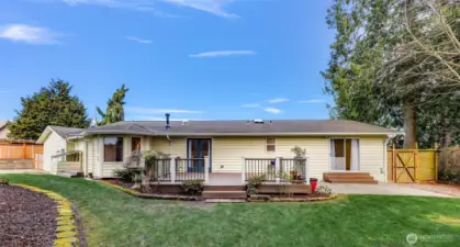 Tucked away on a quiet cul-de-sac in the Waugh Hill neighborhood, this well-maintained rambler offers comfort and functionality in a single-level design. Featuring just under 1,900 sq ft, the home includes a spacious primary suite with an ensuite bath and a walk-in closet, plus two additional bedrooms and a full bath. Skylights and a wall of windows bring in abundant natural light, highlighting hardwood floors and both formal and informal living and dining areas. The updated main bath adds a modern touch, while a freestanding gas stove provides warmth and ambiance. French doors open to a large deck overlooking a private, landscaped backyard. Includes an outdoor shed for storage. Conveniently located near amenities, this move-in-ready home offers a great combination of space, privacy, and livability. Turnkey or make it your own, you don’t want to miss this amazing home!