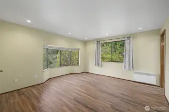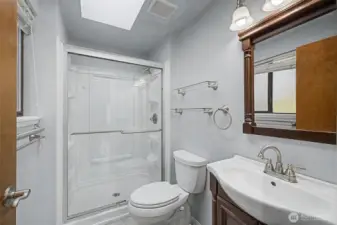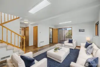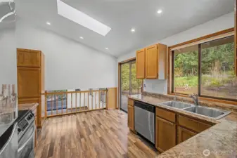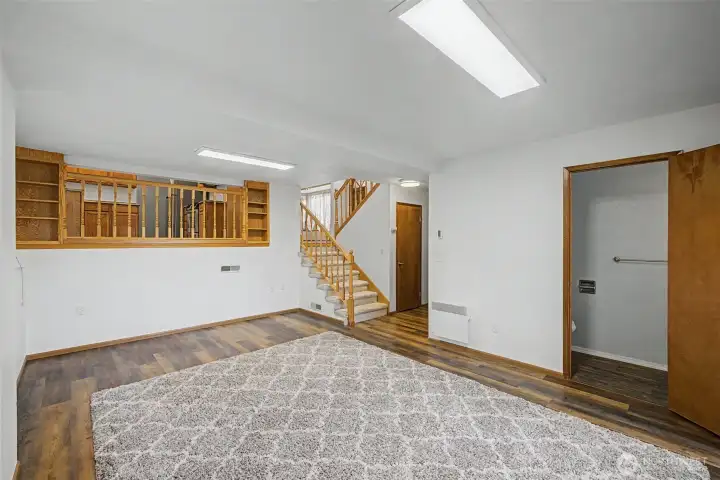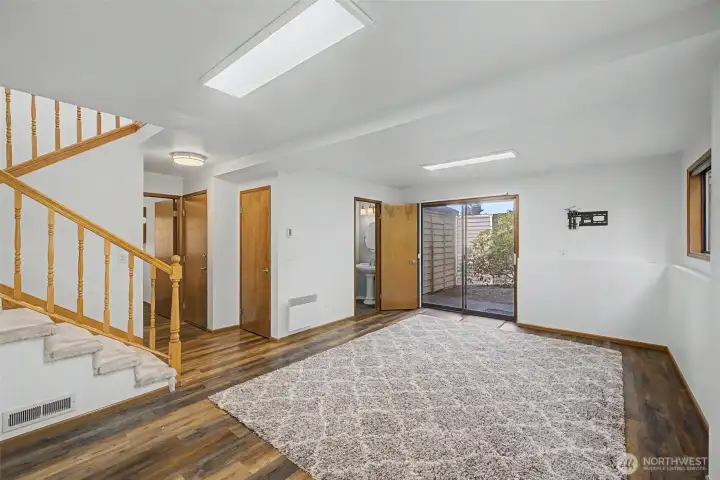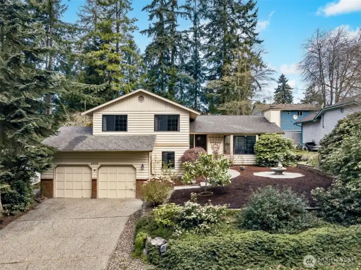 This inviting tri-level home offers 3 bedrooms and 2.5 baths in a convenient Lynnwood location. The main level features a welcoming living room with vaulted ceilings and a cozy fireplace, a well-appointed kitchen with stainless steel appliances, a dining area, and convenient access to the backyard for easy indoor-outdoor living. The beautifully terraced yard is a gardener’s delight with endless potential. The home is awash with natural light, thanks to large windows and thoughtfully placed skylights that brighten the living spaces. Upstairs, you will find 3 bedrooms including a spacious primary suite with a private bath and Olympic Mountain views, along with a full second bathroom. The lower level offers a generously sized family room with endless possibilities, perfect for a game room, movie area, playroom, or a combination of all three. A laundry room and convenient half bath complete this level. Efficient heating keeps the home comfortable while helping manage energy use year-round.
