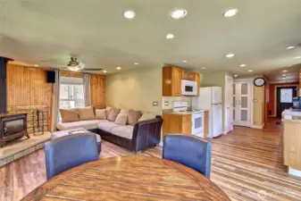 Must See charming 2-bedroom, 1-bath home on desirable North Shore Drive with modern comfort. Inside, enjoy a cozy kitchen with farmhouse sink, warm wood paneling, and beautiful barn doors throughout. Also enjoy shared 1/16 ownership to a lakefront lot with dock, ideal for days on the water, while soaking up sunshine from one of the most desirable sides of the motorized boat lake. The primary suite features French doors leading to a covered composite deck with 8-person hot tub and fire pit—perfect for relaxing year-round. Additional features include a 200-amp electrical panel, Metal roofing, a garage with project space and attic storage. No HOA! Near Community Center, top-rated Fire Dept and public boat launch. A true Lake Cavanaugh gem ready for weekend escapes or full-time living.
