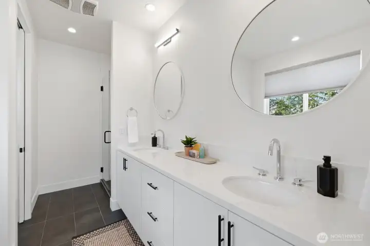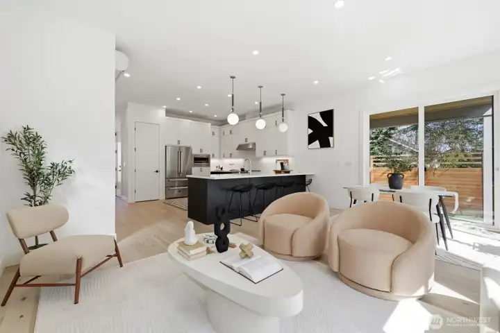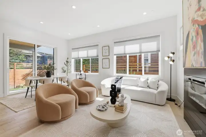 Tucked away in a peaceful, established community, this contemporary home welcomes you with a flood of natural light and an immediate sense of "home." The open-concept design with south facing windows and 10-foot ceilings on both levels feels expansive and airy. Retreat to the primary suite’s private balcony for quiet sunsets, or enjoy the privacy of a fully realized backyard. Inside, stay cool year-round with full A/C and enjoy a chef’s kitchen featuring abundant storage. Outside, the possibilities are endless: unparalleled privacy with a sprawling backyard for play and a massive 60-foot driveway—perfect for your guest fleet or weekend toys. Walk to Delancey for dinner, or grab your morning pastry at Rosellini’s before catching the 15th Ave bus for a seamless commute. Move-in ready and meticulously maintained. The sellers have proactively conducted a pristine pre-inspection and a sewer scope, ensuring a transparent and seamless transition for the new owners.
