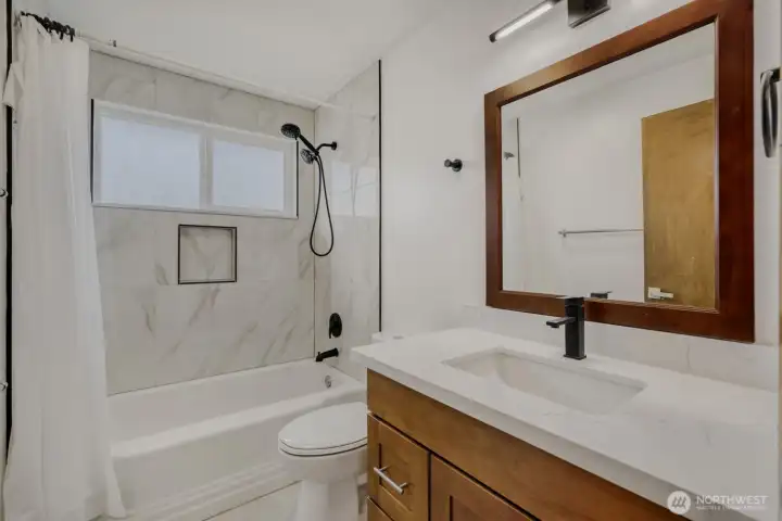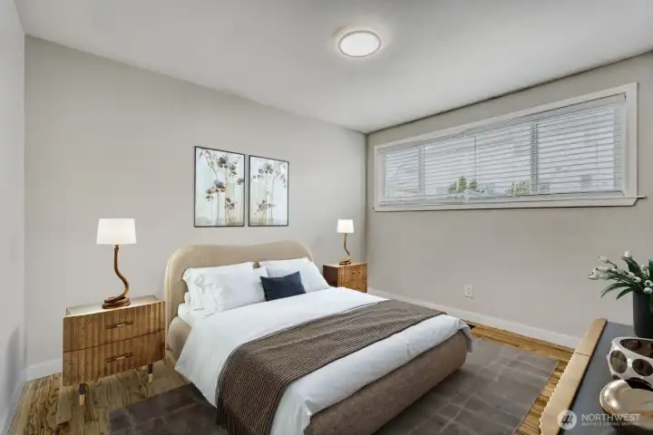 Welcome to your beautifully remodeled Beacon Hill rambler on a 7,152 sq ft lot with NR3 zoning, allowing a principal residence plus up to two Accessory Dwelling Units (ADUs)—great potential for future expansion or rental income. This home features a new roof, new double-pane windows, new LVP flooring, new light fixtures, and a new gas water heater. The updated kitchen includes newer appliances, while the living room offers a cozy wood-burning fireplace and real hardwood floors. Step outside to enjoy the private patio and level, fully fenced yard, perfect for relaxing or entertaining. The property also includes a 1-car garage and is located on a quiet street at the end of the road. Convenient location within walking distance to Wing Luke Elementary School and with easy access to I-5, Sea-Tac Airport, shopping, and downtown Seattle.