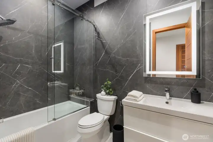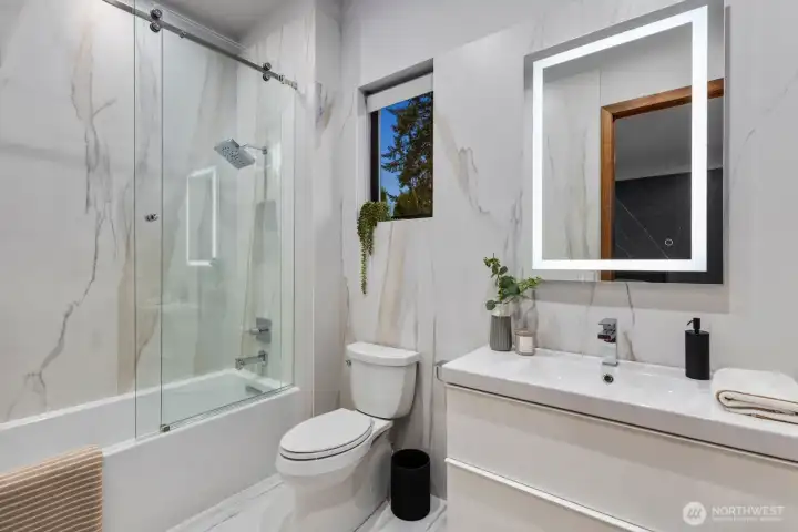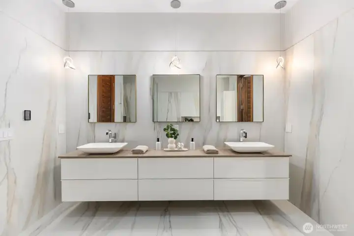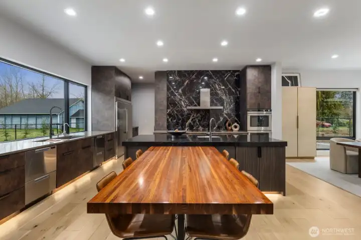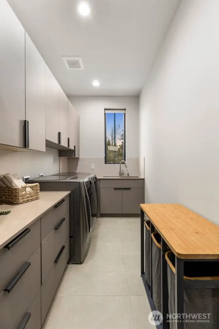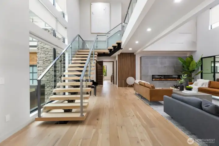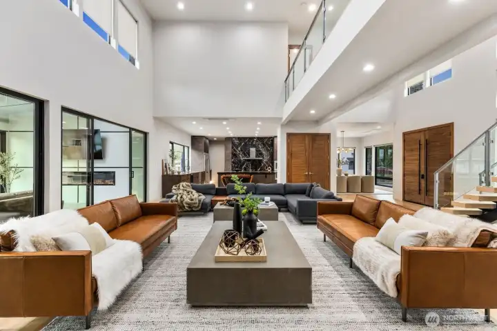 Introducing a once-in-a-lifetime gated private estate set on 1.87 fully fenced acres offering privacy, craftsmanship, and modern luxury. The main residence spans 5,285 sqft with a detached 800 sqft ADU. This custom-built 4-bedroom, 4.25-bath home features imported Italian tile, European engineered oak hardwood flooring, and high-end finishes throughout. A grand entry welcomes you with 10+ ft ceilings, a floating staircase with glass railings, and large windows bringing in natural light, with an open catwalk overlooking the main living area. The chef’s kitchen features Pental quartz, bespoke cabinetry, a statement island with butcher block accents, and three sinks, with a Thermador induction cooktop, double ovens and dishwashers by Fisher & Paykel, oversized Electrolux fridge/freezer, and a butler’s pantry. The primary suite offers heated tile floors and a spa-caliber 5-piece bath with soaking tub, dual-head shower, dual vanities, fireplace, and floor-to-ceiling tile panels. The detached ADU includes a bedroom, bath, sink with cabinetry, heated tile floors, and a 15-person Swedish sauna. An 18x35 shop and 1,092 sqft 3-car garage add flexibility. Outdoor features include a fire pit, enclosed heated deck with entertainment area, a playground, RV parking, EV charging, wired for generator, a second-floor deck with mountain views, and a creek along the back. A rare opportunity to own a custom estate blending luxury, functionality, and modern Northwest living. Schedule a tour today.