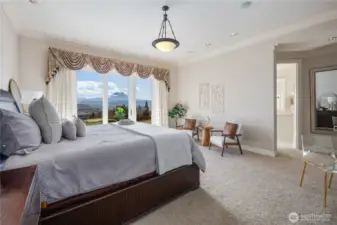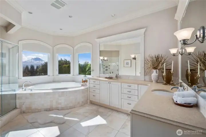Unobstructed Mt. Rainier views, on full display from nearly every room, framed perfectly from your kitchen, great room, and private retreat. Perched in South Hill’s coveted North Rim, this rare view estate offers unobstructed, sweeping views of Mt. Rainier and the Orting Valley that truly must be experienced in person. Spanning over 5,200 sq ft, this custom-built home was thoughtfully designed to capture breathtaking scenery from nearly every primary living space, including the kitchen, great room, primary suite, office, and additional bedrooms. Timeless craftsmanship shines throughout with Italian travertine flooring, smooth wall finishes, soaring 10’ ceilings, 8’ doors, and extensive crown molding. The chef’s kitchen is both functional and stunning,featuring premium stainless appliances, custom cabinetry, granite countertops, expansive island seating, a butler’s pantry, and walk-in pantry,perfect for everyday living and elevated entertaining. The expansive great room invites you to gather around a statement fireplace while taking in the view, while the luxurious primary suite offers a private escape with panoramic scenery, spa-inspired bath, and direct patio access. Additional highlights include a dedicated home theater, executive office with incredible views, skylit upper level, spacious secondary bedrooms, dual HVAC systems, full insulation throughout, and an oversized 3-car garage. Homes like this are rarely available, this is North Rim living at its finest.