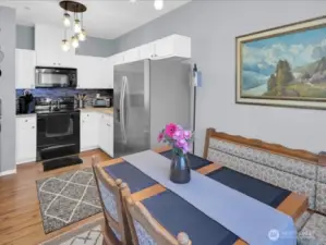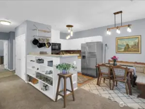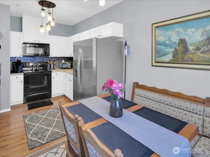Sophisticated living in this private, gated community! Views of Mt Rainier from kitchen and balcony. Hipsters will enjoy this immaculate 2 Br/ 2BR unit with high ceilings, 2 private balconies and low monthly dues! The perfect blend of style and comfort in this stunningly updated second floor condo! Updated cabinets, engineered hardwood floors in kitchen, bright dining area, open floor plan living room with cozy fireplace. Sliding door opens to priate balcony with storage. Primary suite with large walk-in closet. All appliances stay! Amenities include: gated entry, clubhouse, exercise room, game room, and play space.