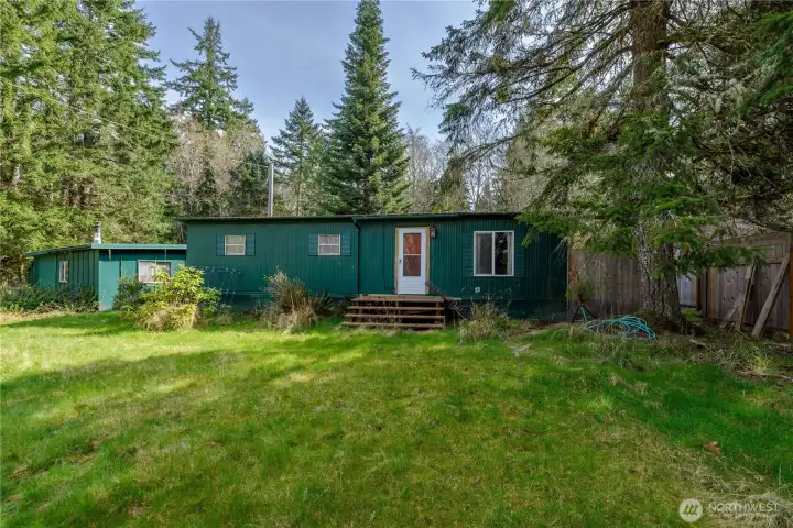 Affordable rustic retreat with large covered front porch situated on nearly an acre of land. This 2 bed/1 bath double wide manufactured home has a brand-new furnace as well as cozy pellet stove. Wall between bedrooms was opened up for a larger space but could easily be separated back into two different spaces. Huge 704 sq ft detached garage. Lots of room for RV or boat parking. Fenced in front yard adds privacy. Crescent Water Share included with sale. Property is close to fishing, hiking and beach activities. Level yard with fruit trees, easy maintenance landscaping, and plenty of room for a garden!