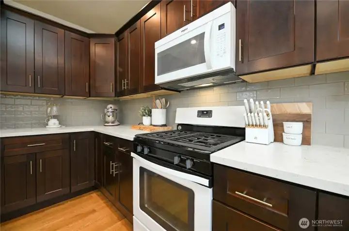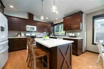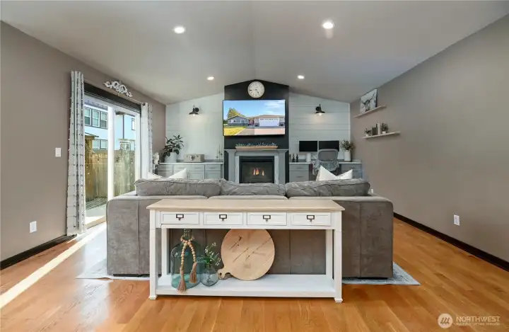 Possible ASSUMABLE LOW INTEREST RATE FHA loan, w/ criteria ~Welcome to this BEAUTIFUL 3 bedroom/1.75 bath, move-in ready RAMBLER! You'll love this better-than-new home, designed for comfort, style and everyday convenience - with DESIGNER TOUCHES throughout! You'll flow seamlessly into the living areas on HARDWOOD FLOORING to the cathedral ceiling living room, warmed by the GAS FIREPLACE, airy office area/flex shelving space and dine in the light and bright dining area. You'll then ease into the inviting and SPACIOUS kitchen with large island w/ seating, an unbelievable amount of cabinetry, an expansive amount of QUARTZ counters, gas range, undermount sink, and subway tile backsplash. Enjoy the calm of the lovely primary bedroom w/ WALK-IN CLOSET & spacious double vanity EN-SUITE/bathroom. You'll appreciate the thoughtfully created LARGE storage closets along the hallway, the sizeable ADA doorways, 2 additional bedrooms, an expansive 2nd bathroom + a separate laundry room with utility sink, all centrally located. Step out onto your low maintenance PATIO to watch the game w/ friends, in your wired GAZEBO and perfect entertaining outdoor living area, all within a fully FENCED BACKYARD. Oversized finished 2+ car garage w/entry ramp to interior door & loads of STORAGE space. Enjoy your A/C this summer & your hardwired GENERATOR when you lose power. PRIME LOCATION w/ wonderful schools, 7 miles of WALKING TRAILS in adjacent park, close to shopping, medical providers, Costco & I-5.