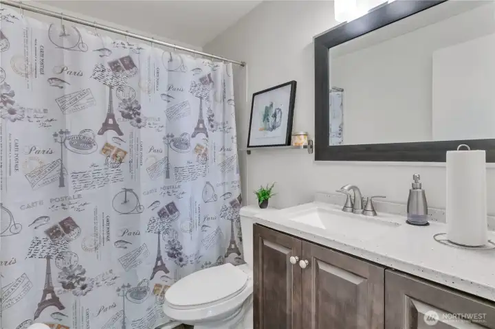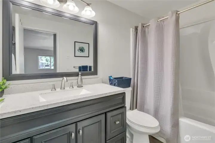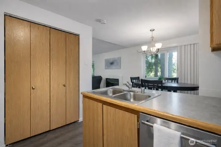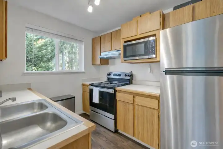 LOCATION, LOCATION, LOCATION!! Elevated living in the heart of University Place! This top-floor, quiet corner-unit condo offers 2 bedrooms, 2 baths, and 2 parking spaces (1-car garage + additional reserved space). Vaulted ceilings and abundant natural light create a bright, open feel, overlooking trees that enhance the peaceful setting and mountain views. Renovated in 2019 with updated flooring, fresh paint, lighting, appliances, and a remodeled bath. Recent exterior updates include new paint, roof (2023), and double-pane windows for improved efficiency and noise reduction. The open-concept layout features a stainless steel kitchen (refrigerator included) flowing into the living and dining area with a cozy wood-burning fireplace. Enjoy your private deck—perfect for relaxing or entertaining while taking in scenic surroundings. Single-level living with both bedrooms and baths on the main floor, plus in-unit laundry with washer/dryer included. Parking includes one space in a common garage and one uncovered space. HOA covers water, sewer, garbage, and common area maintenance for low-maintenance living. Located less than 5 minutes to Chambers Bay Golf Course & Park with waterfront trails, playgrounds, picnic areas, and stunning views. Close to dining, shopping, top-rated University Place schools, Tacoma, and JBLM—an exceptional opportunity!