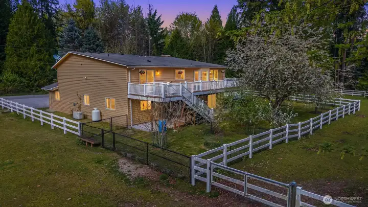 Discover a rare opportunity in Bothell—where space, versatility, and tranquility come together on over an acre of fully fenced property. This 5 bedroom, 5 bath home lives like two residences, offering exceptional flexibility for multi-generational living or rental potential.The expansive primary suite features two bathrooms, creating a private retreat. Downstairs, a complete mother-in-law suite opens to a covered patio, perfect for guests or extended living. An interior elevator adds convenience and ADA accessibility throughout the home.Enjoy the practicality of dual laundry rooms (upstairs and downstairs), a spacious mudroom with a built-in dog bath, and thoughtful updates including new carpet and fresh interior paint. The home has been fully inspected for added peace of mind.Outdoors, the property is equally impressive—fully fenced with vinyl fencing suitable for horses, complete with a 4-stall barn, dog run, apple trees, and above-ground garden beds for your own harvest.Peaceful, private, and conveniently located—this is a property that truly offers it all.