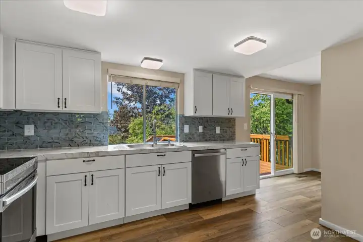 Very Nice 1760 SF 3 Bedroom 2.5 Bath And 480 Sf 2 Car Garage. This Beautiful Home Stands Proud on a Large 8,276 Sf Lot located On a Quiet CUL- DE- SAC in the Heart of Lynnwood & AWARD WINNING EDMONDS SCHOOL DISTRICT. VINYL PLANK (like) Floors on Main Level. Upper Level has Formal Living Room w/ Gas Fireplace, Formal Dinning Room and Large Updated Kitchen w/ STAINLESS STEEL APPLIANCES, QUARTZ COUNTERS, Nice White Kitchen Cabinets & Tile Backsplash & Chrome Hardware. Outdoor Upper Sliding Door To Enjoy the NEW CEDAR SUNDECK. Large Downstairs Recreation Room with Hardwood (like) Floors And Another Gas Fireplace & Wet Bar. Laundry Rm and 3/4 Bath Large 2 Car Garage w/ Room For Bonus Area. Space For RV Parking.