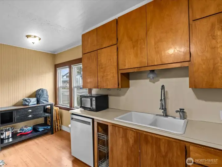 Opportunity knocks in Everett's desirable Pinehurst neighborhood! This 1912 storybook cottage is the ideal cosmetic fixer, offering a perfect blend of historic character and modern potential. The open-concept main floor features a warm, inviting gas fireplace that anchors the living room and kitchen areas. With two bedrooms up and one down, the layout is versatile and ready for your vision. Situated on a large, flat fenced lot, there is plenty of room outdoors for entertaining or gardening. Lots of parking with alley access. Commuters and urban explorers alike will love the ultra convenient location. You can walk to local pubs, restaurants and the trail. Also, quick access to major transit routes and roadways. Possible commercial uses. Buyer to verify. Bring your design ideas and build instant equity in this vibrant community.
